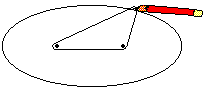 Bei der Ellipse ist die Summe der Abstände eines Punktes von den zwei Brennpunkten stets konstant. Aus dieser Tatsache resultiert ein einfaches Konstruktionsverfahren. Fallen die beiden Brennpunkte zusammen, erhält man einen Kreis, ist der Abstand der Brennpunkte größer als die Strecke AB, ergibt sich statt einer Ellipsen eine Hyperbel. Probiere das durch Verschieben der Brennpunkte F2 und F2 oder des Punktes B aus. |